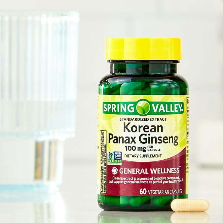 Spring Valley Korean Panax Ginseng Vegetarian Capsules, 100 mg, 60 Count Spring Valley Korean Panax Ginseng Vegetarian Capsules, 100 mg, 60 Count Spring Valley Korean Panax Ginseng Vegetarian Capsules, 100 mg, 60 Count